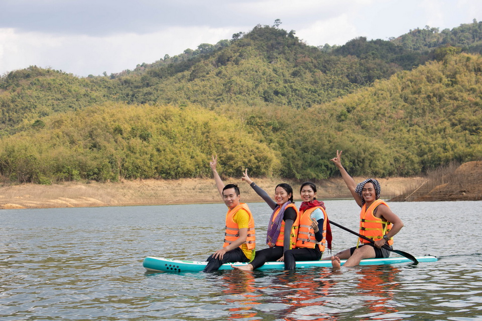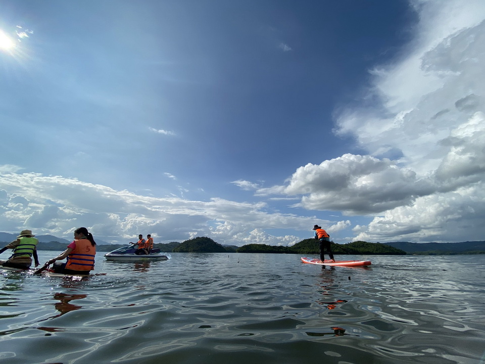 Chèo Sup, chèo bè tre: thật tuyệt vời cho những bạn thích chậm rãi ngắm cảnh hồ, hòa mình vào thiên nhiên và cảm nhận sự nét đẹp hoang sơ, mộc mạc nơi hồ Tà Đùng giữa Tây Nguyên nắng gió.